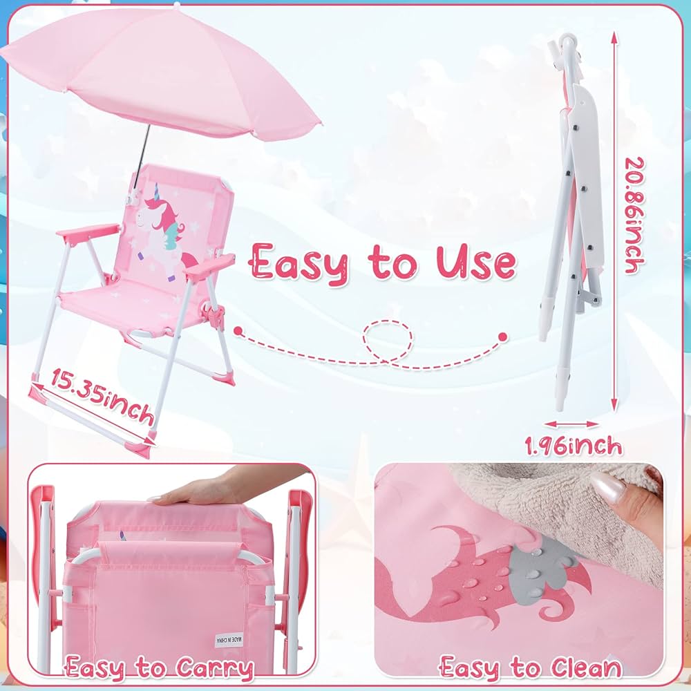 Dizajnet e bukura dhe ngjyrat e gjalla me figura të kafshëve apo unicorn-it e bëjnë këtë karrige shumë tërheqëse për fëmijët, duke e kthyer çdo dalje në një eksperiencë argëtuese.