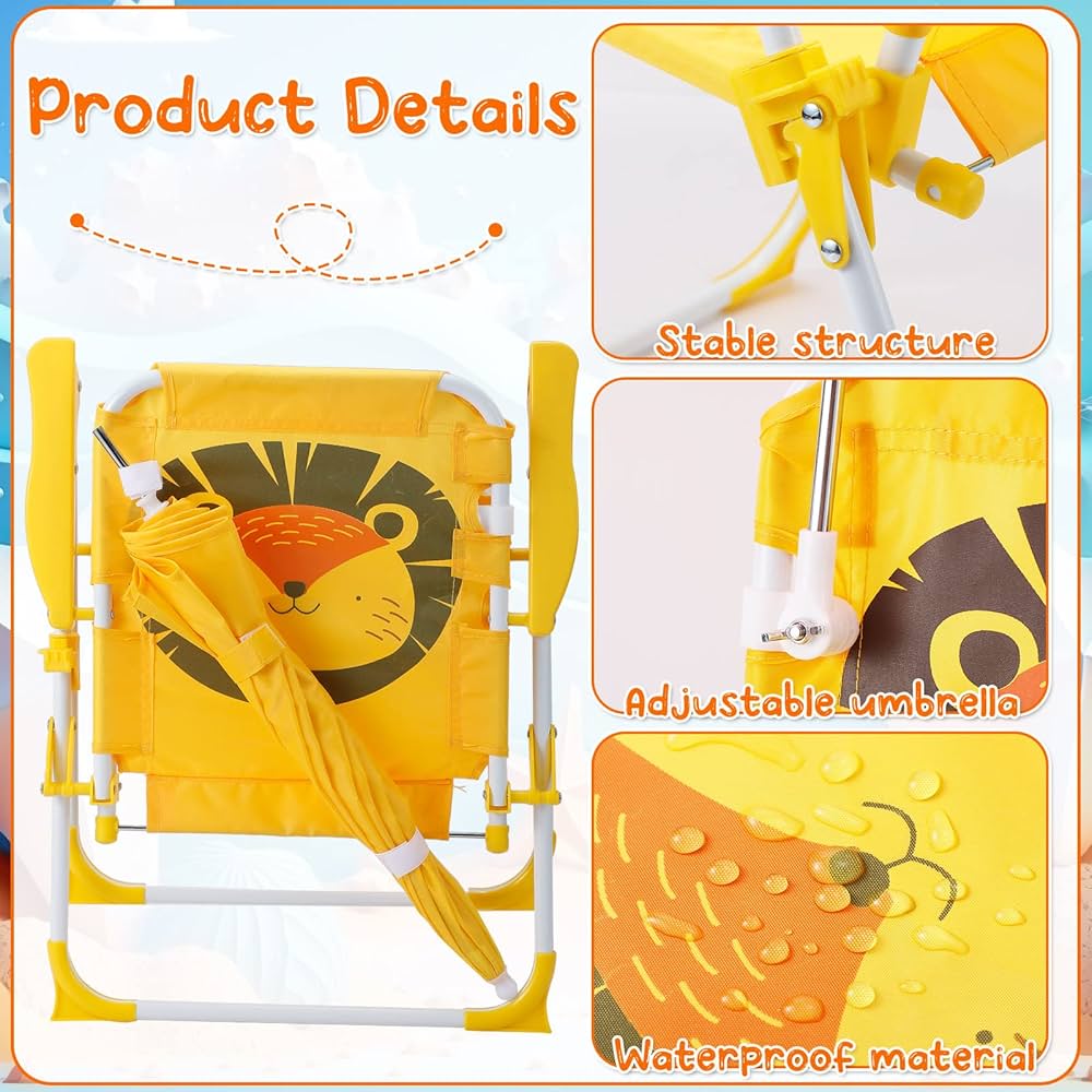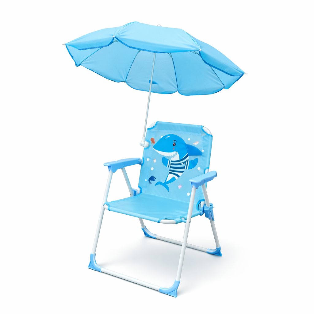 Kjo karrige praktike për fëmijë është zgjedhja ideale për ditët në plazh, park apo në oborr. E dizajnuar posaçërisht për fëmijët, ajo kombinon komoditetin, sigurinë dhe mbrojtjen nga dielli në një produkt të vetëm. Falë çadrës së rregullueshme, fëmijët mund të qëndrojnë në hije dhe të shijojnë lojën apo pushimin pa u ekspozuar direkt në diell.