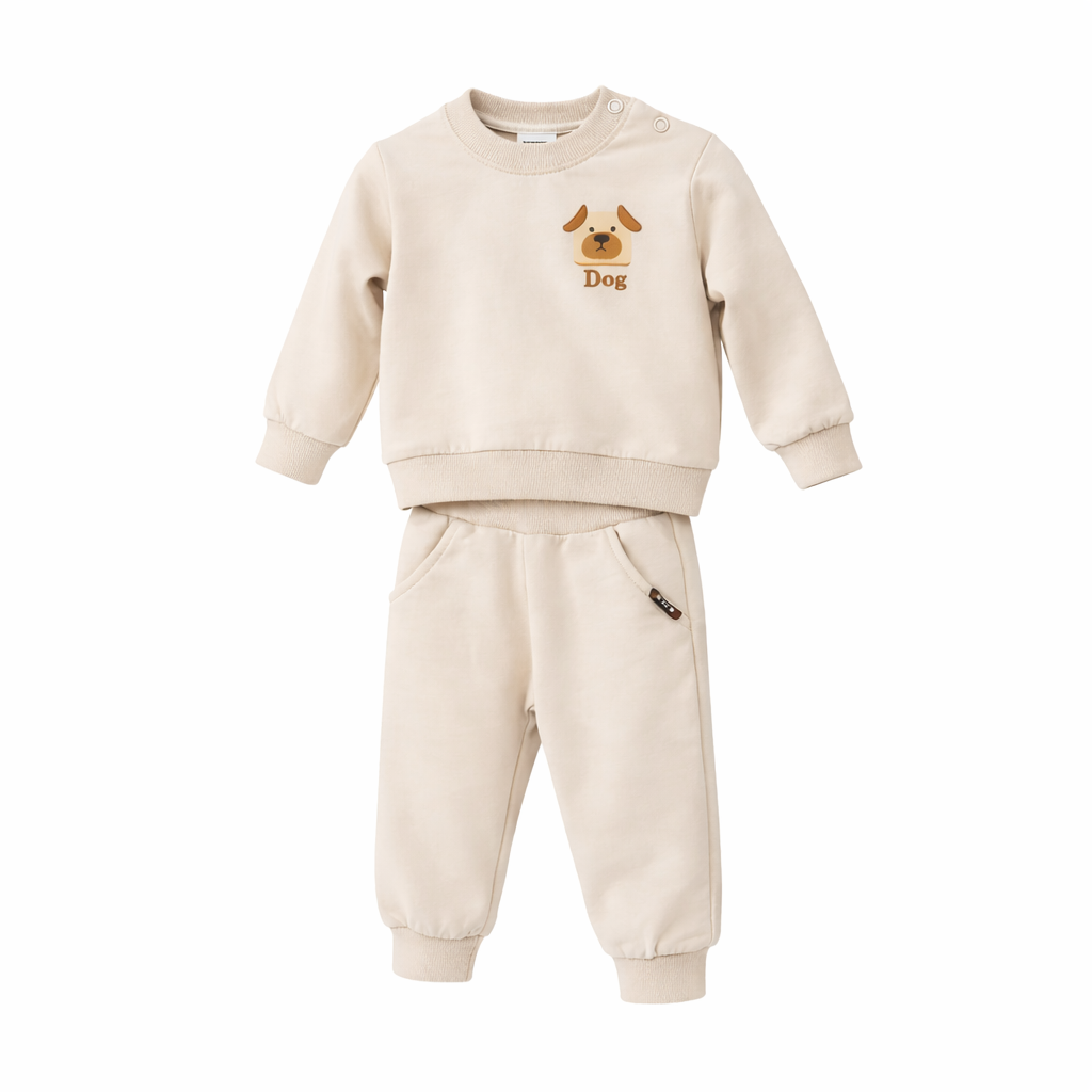 Komplet dy-pjesësh i përbërë nga bluzë dhe pantallona, i dizajnuar për rehati dhe përdorim të përditshëm. I punuar nga 95% pambuk dhe 5% elastik (lycra), materiali është i butë, dhe elastik, shumë i përshtatshëm për lëkurën e ndjeshme të bebes.