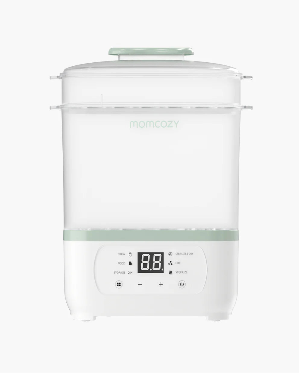 Momcozy 8-in-1 Electric Steam Sterilizer është një pajisje e gjithanshme për sterilizimin, tharjen dhe ruajtjen higjienike të shisheve dhe aksesorëve të bebes. Me kapacitet të madh, sistem sterilizimi me avull në temperaturë të lartë dhe funksion tharjeje automatike, ai siguron pastërti maksimale në vetëm disa minuta – pa kimikate, vetëm me avull të pastër.