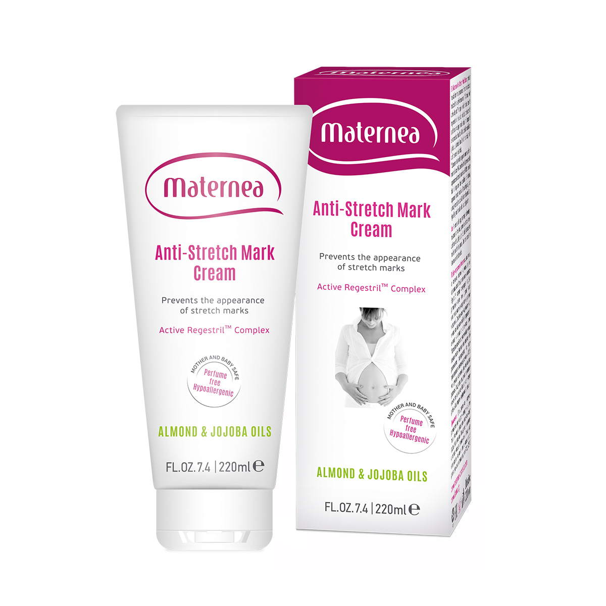 MATERNEA Anti-Stretch Mark Cream është një krem i avancuar, i krijuar posaçërisht për lëkurën e grave shtatzëna, i cili ndihmon në parandalimin e shfaqjes së strijave dhe në reduktimin e atyre ekzistuese. Efektiviteti i tij bazohet në formulën speciale me kompleksin aktiv Regestril™, të kombinuar me vajra bimore dhe vitamina të përzgjedhura.