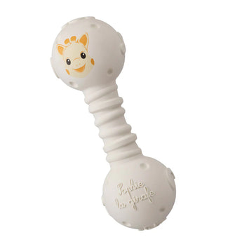 Sophie la Girafe Teething Rattle kombinon në mënyrë perfekte ngushëllimin dhe lojën ndijore. E punuar plotësisht nga 100% gome natyrale, kjo rrathkë e mrekullueshme përfshin një zile të butë që stimulon dëgjimin, tekstura të ndryshme për eksplorim prekës dhe aromën karakteristike të gomës natyrale që e bën përvojën edhe më të këndshme për fëmijën.