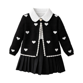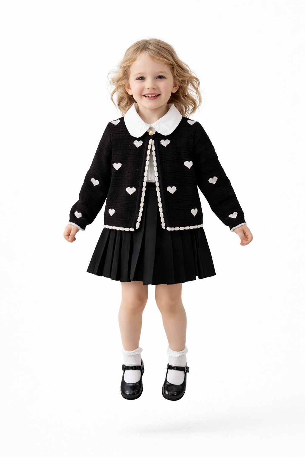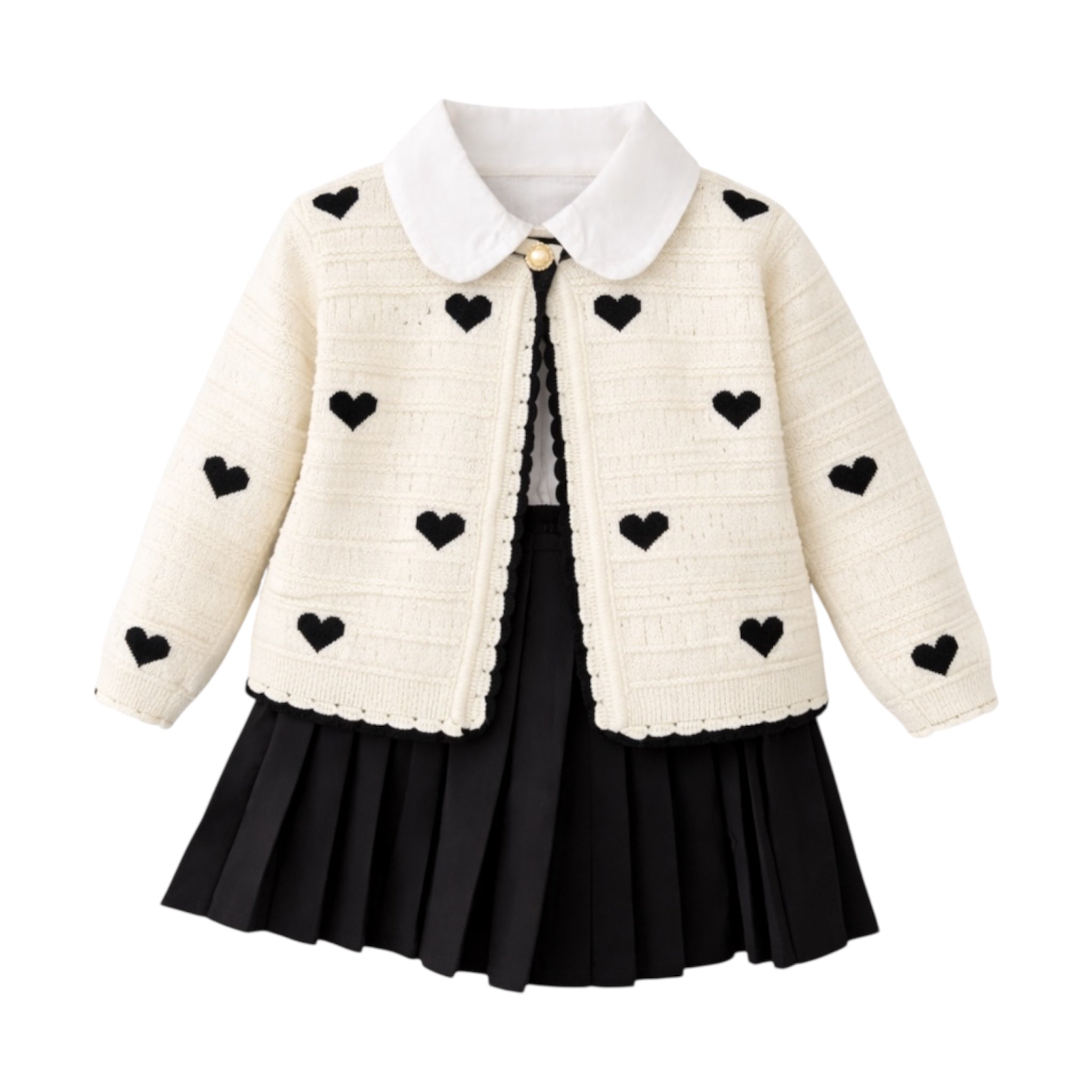 Ky set elegant 3-pjesësh për vajza është zgjedhja perfekte për raste të veçanta dhe veshje me stil. Seti përbëhet nga këmishë klasike, xhemper i punuar bukur dhe fund elegant, të kombinuara në mënyrë perfekte për një pamje të rregullt dhe moderne.