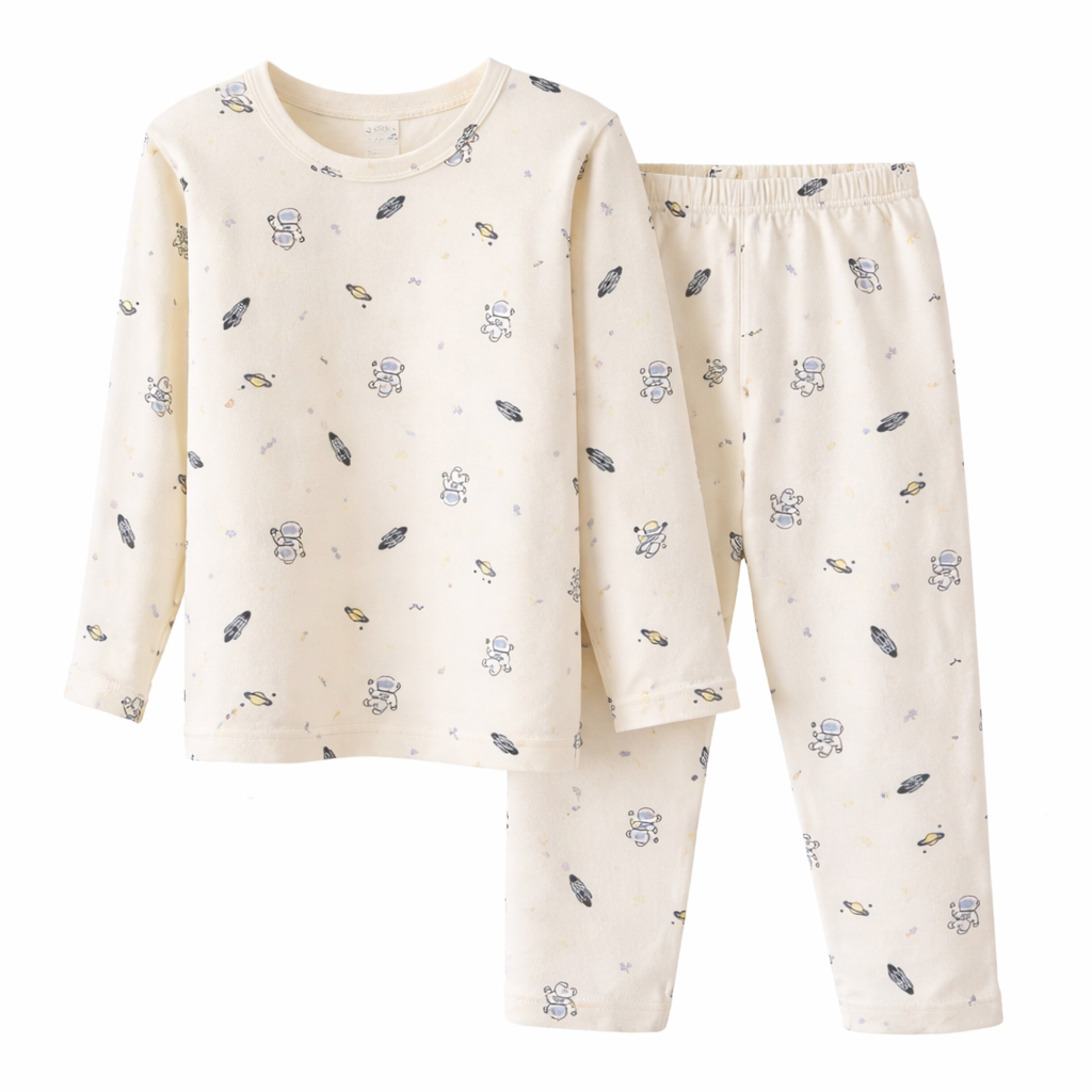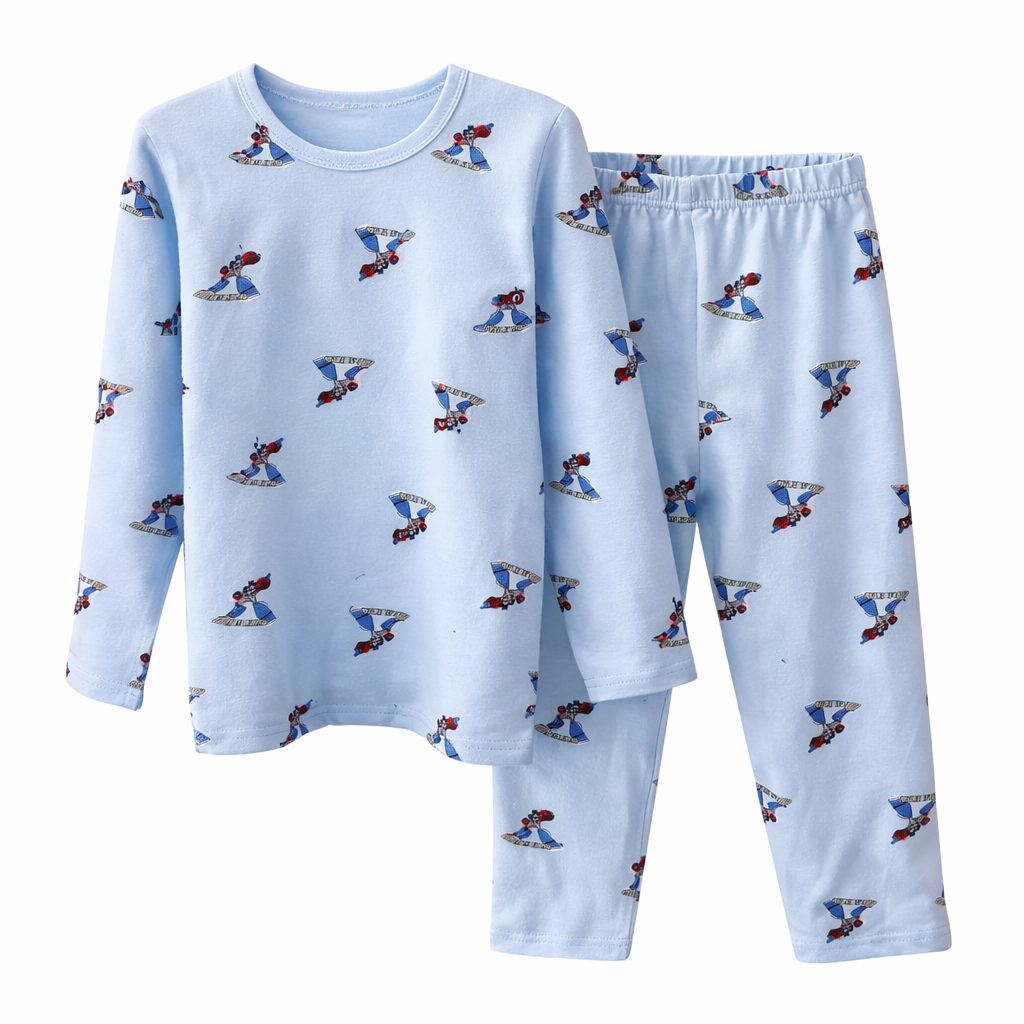 Dizajni i këndshëm me printime të ndryshme e bën këtë pizhame të dashur për fëmijët, ndërsa materiali i butë dhe elastik siguron rehati gjatë gjithë natës. E përbërë nga bluzë me mëngë të gjata dhe pantallona, është zgjedhje perfekte për përdorim të përditshëm.