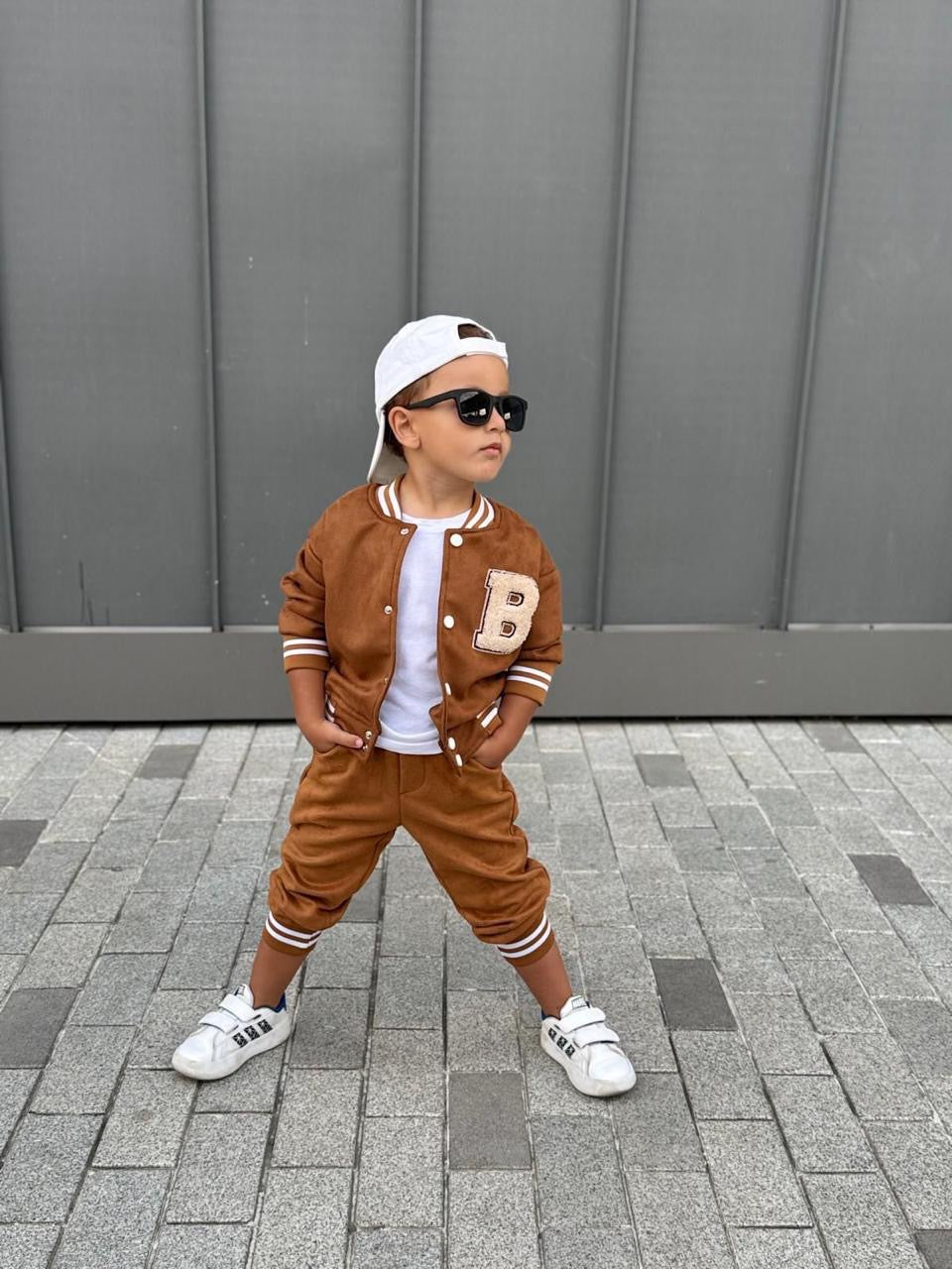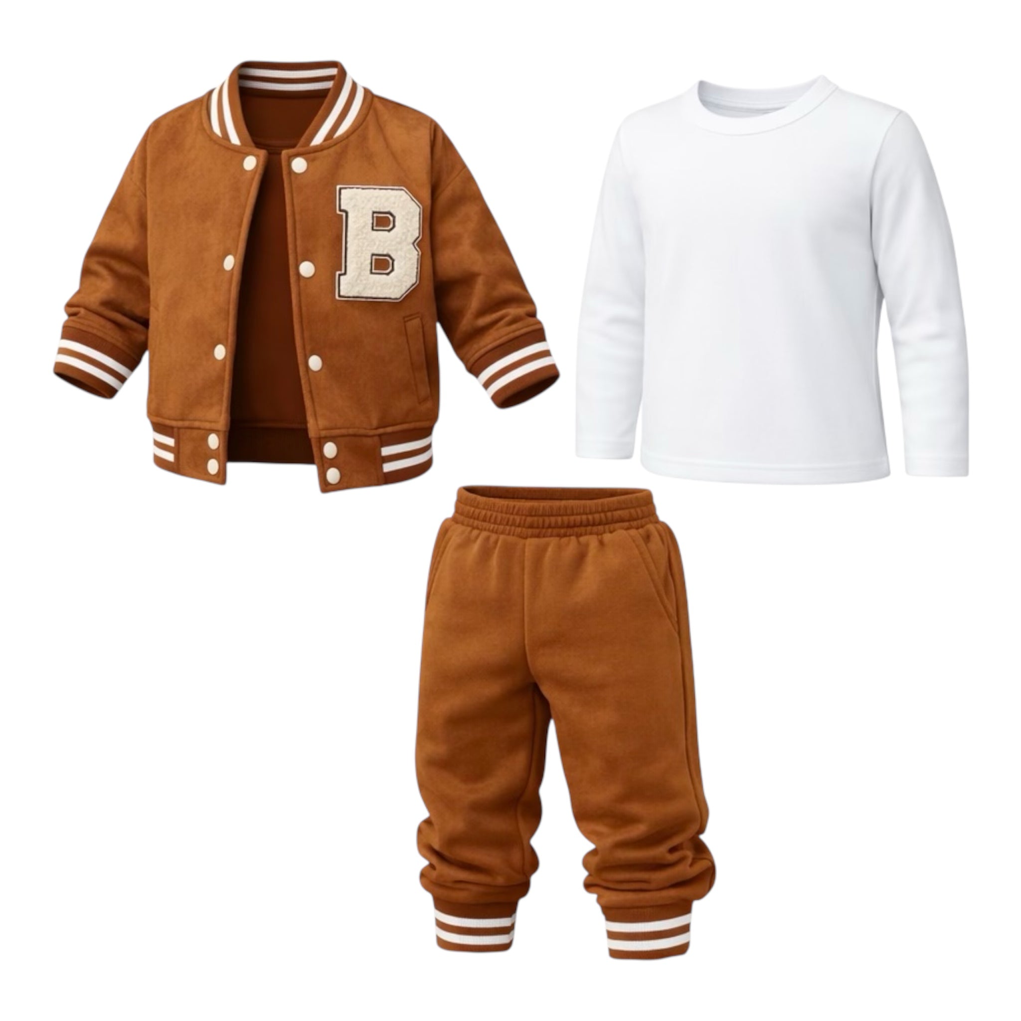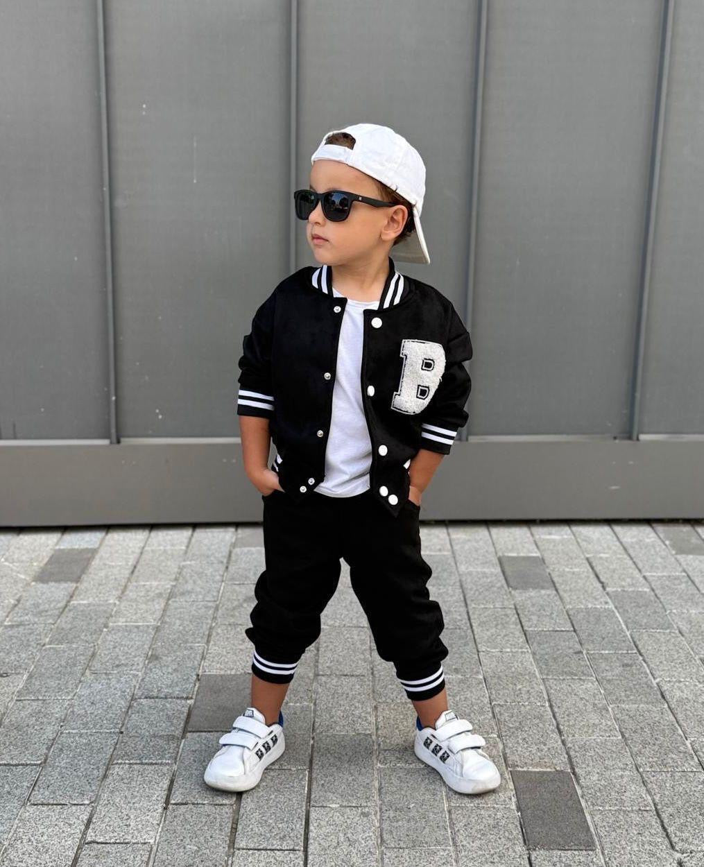 Komplet modern për djem, i përbërë nga tri pjesë: xhaketë sportive, bluzë me mëngë të gjata dhe pantallona, i dizajnuar për rehati dhe stil në përditshmëri. Materiali i butë dhe cilësor siguron ndjesi të këndshme gjatë veshjes, ndërsa prerja praktike lejon lëvizje të lirë gjatë lojës apo aktiviteteve ditore. Pantallonat me bel elastik përshtaten lehtë, ndërsa dizajni sportiv e bën këtë komplet ideal për shkollë, shëtitje dhe dalje casual.
