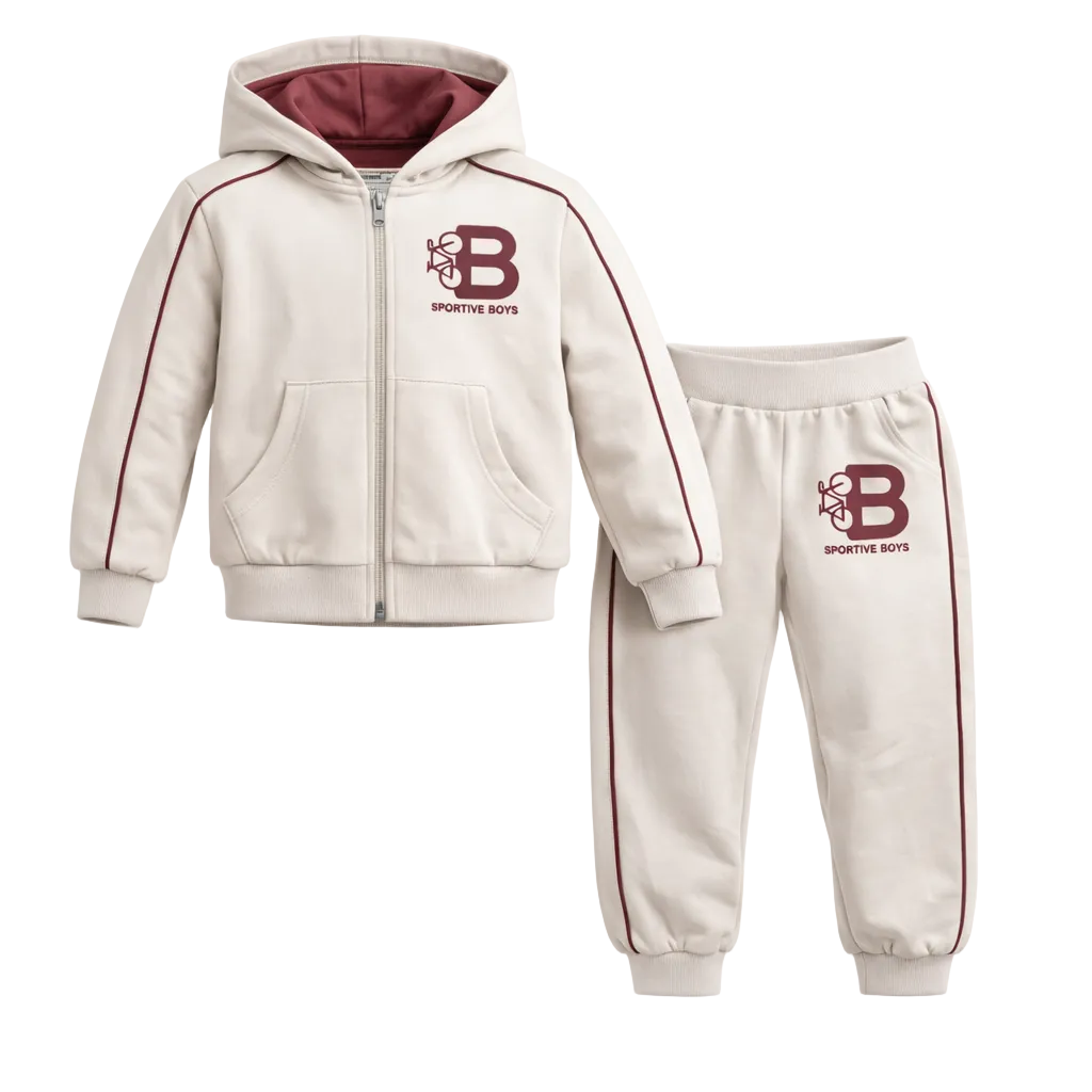 Ky set sportiv për djem përbëhet nga një duks me zinxhir dhe kapuç dhe pantallona sportive, i dizajnuar për rehati maksimale dhe stil modern në përditshmëri. Materiali i butë dhe cilësor ofron ngrohtësi të këndshme, ndërsa lejon lëvizje të lirë gjatë lojës apo aktiviteteve ditore.