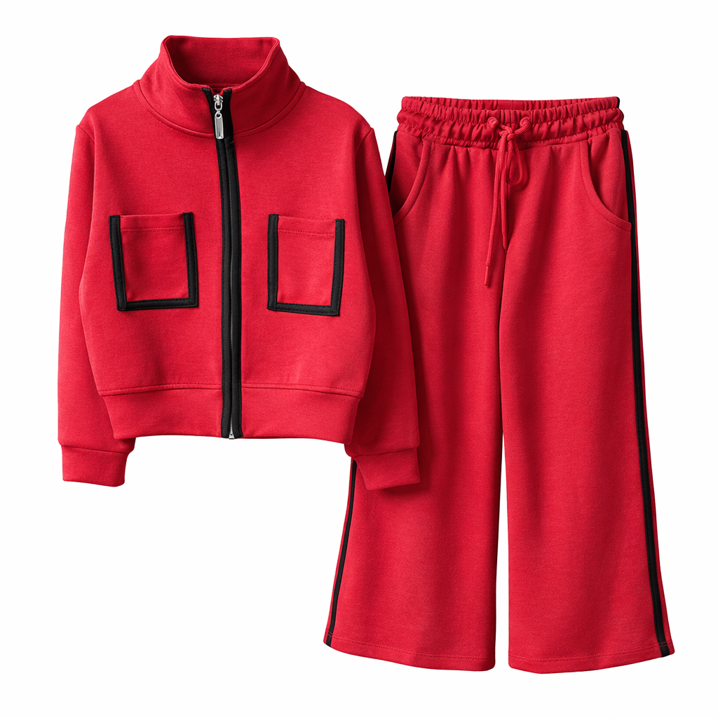 Ky set sportiv për fëmijë (2 pjesë) përbëhet nga një duks/bluzë me zinxhir dhe pantallona të rehatshme, duke ofruar kombinimin ideal mes stilit modern dhe komoditetit të përditshëm. I përshtatshëm për përdorim të përditshëm, shkollë, shëtitje apo aktivitete të lehta, ky set është zgjedhje perfekte për fëmijët aktivë.