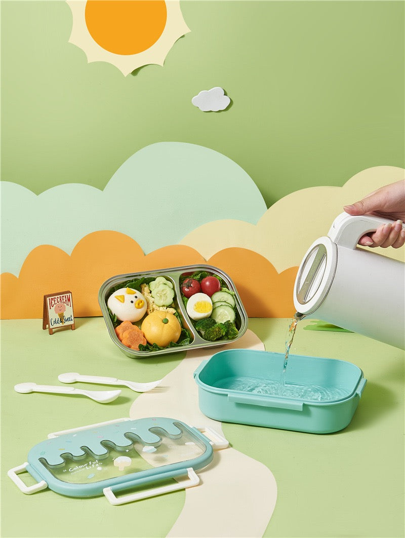 Kjo kuti moderne për drekë është zgjidhja ideale për prindërit që duan të sigurojnë vakte të shëndetshme, të freskëta dhe të organizuara për fëmijët e tyre gjatë qëndrimit në shkollë apo gjatë udhëtimeve. Me dizajnin Bento, kjo kuti ofron hapësirë të mjaftueshme për një vakt të plotë dhe është ndërtuar nga çelik inox rezistent ndaj nxehtësisë, duke garantuar që ushqimi të mbetet i sigurt dhe pa kontakt me plastika të dëmshme.