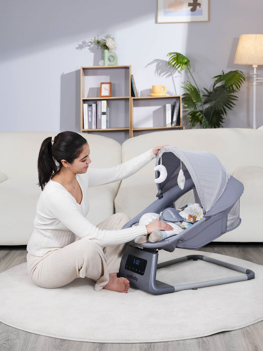 Nëse foshnja juaj qetësohet vetëm në krahë, kjo luhatëse elektrike do të bëhet ndihmësi juaj i përditshëm. E projektuar për të krijuar ndjesinë natyrale të përkundjes, ajo ndihmon beben të flejë më shpejt dhe më gjatë, ndërsa ju fitoni kohë për pushim.