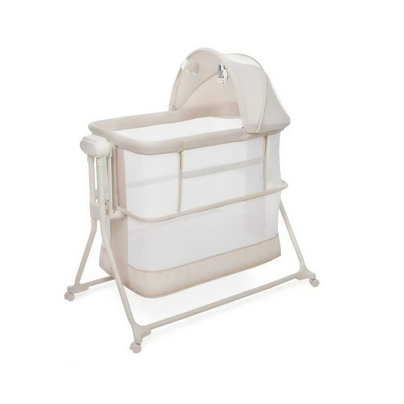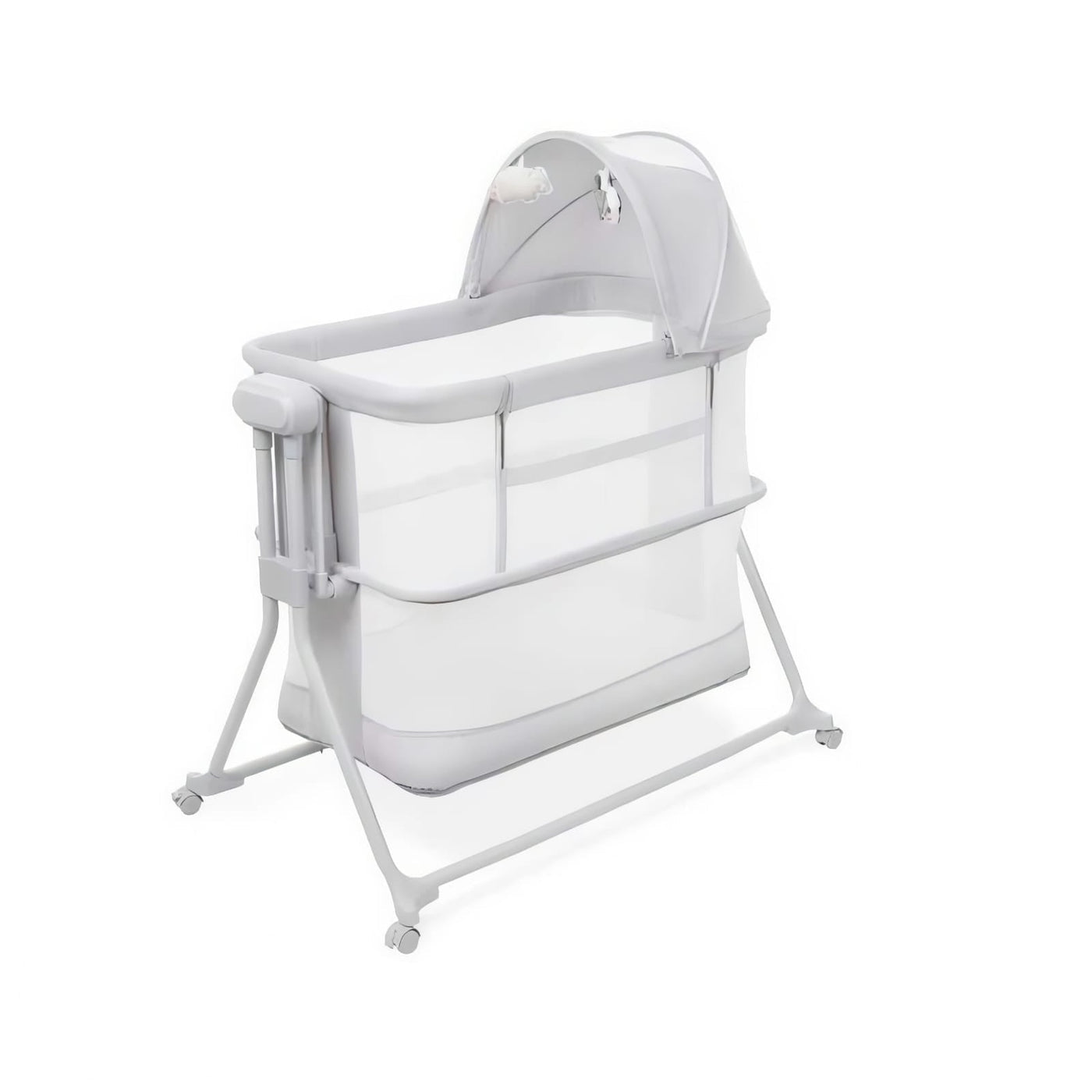 Shtrati vjen me rrjetë kundër mushkonjave dhe dyshek të heqshëm, ndërsa 4 rrotat me frenim sigurojnë stabilitet dhe lëvizje të lehtë nga një ambient në tjetrin. Materialet janë të sigurta, cilësore dhe të lehta për pastrim, me dizajn modern që përshtatet në çdo dhomë gjumi.