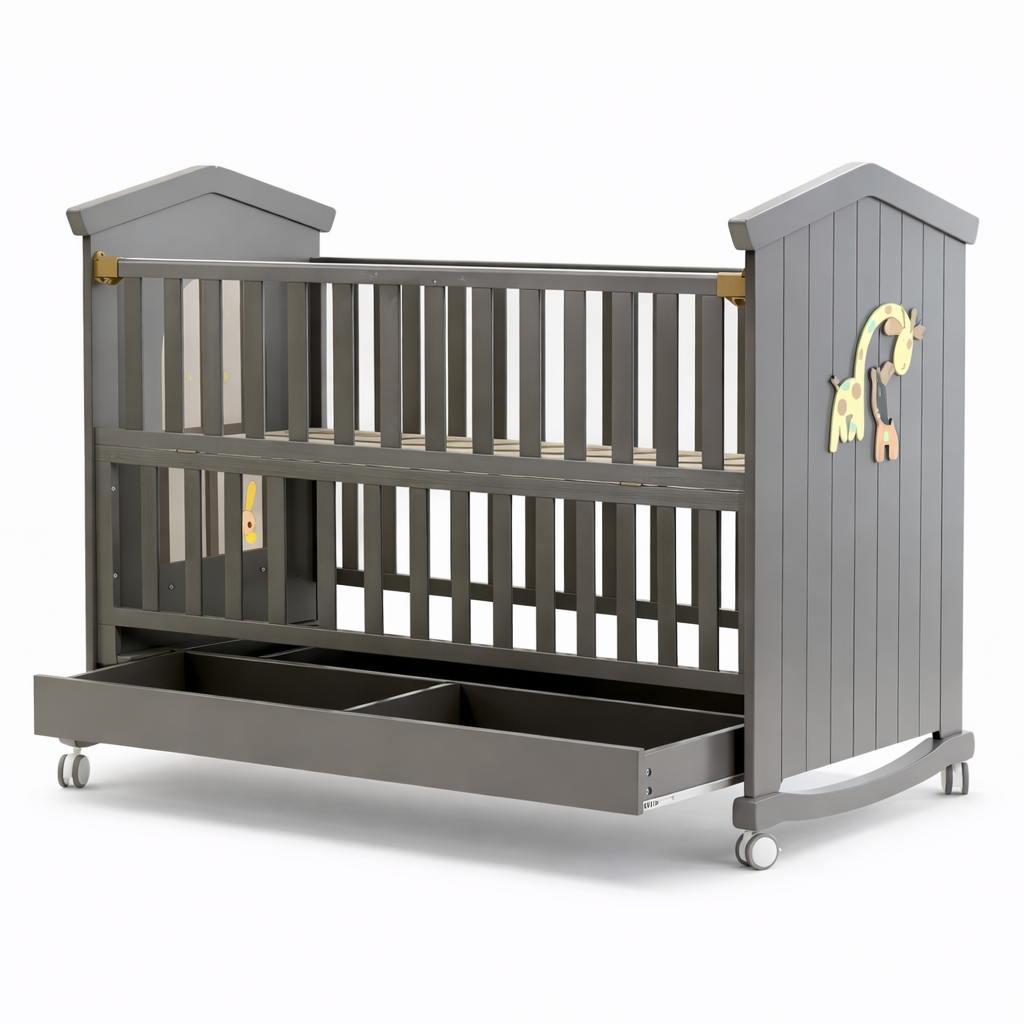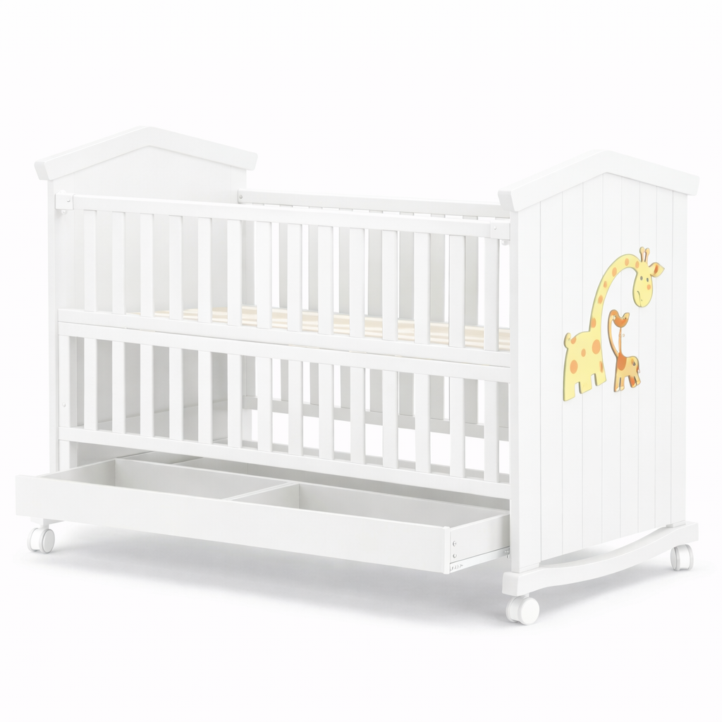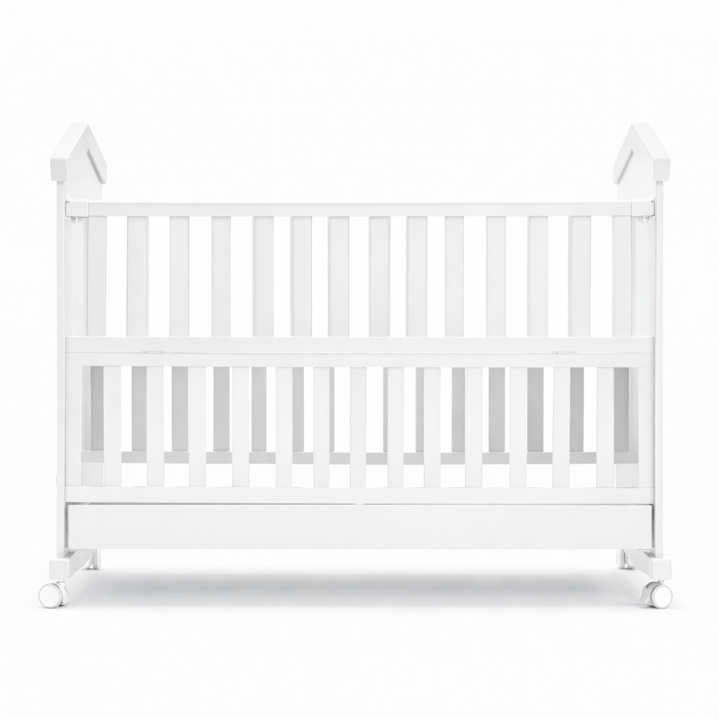 Ky shtrat premium për bebe sjell një dizajn unik me formë shtëpize dhe dritare dekorative me ndriçim LED, duke krijuar një ambient të ngrohtë dhe të qetë për gjumin e foshnjës.